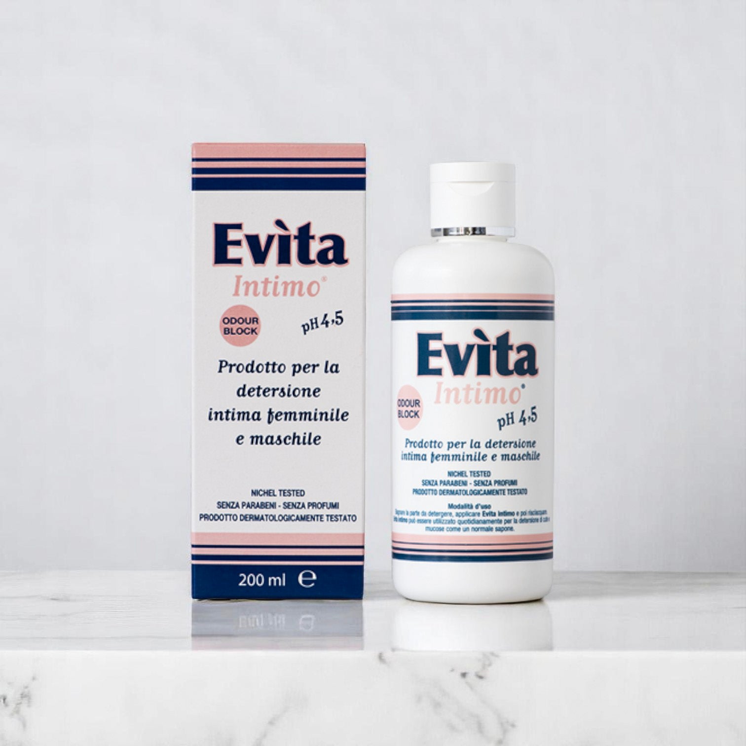 Evìta Intimo è un detergente orto dermico attivo a base di una selezionata mescela di sostanze naturali con comprovata azione antimicotica, antibiotica e antivirale. Le proprietà antisettiche e antimicrobiche lo rendono particolarmente utile , al posto dei tradizionali detergenti, come coadiuvante di trattamenti ginecologici e dermatologici specifici in corso di infezioni micotiche e batteriche. Evìta Intimo è sottoposto a test di valutazione dermatologica per garantire l’ottima tollerabilità su cute e mucose. L’assenza di parabeni riduce il rischio di reazioni allergiche. La presenza di Vitamina E, componente centrale di tutta la linea EVITA, conferisce una significativa azione idratante e protettiva e riduce anche l’azione dannosa dei radicali liberi, soprattutto nelle pelli ultrasensibili, irritate e secche con un effetto immediato sulla riduzione del prurito, sintomo spesso presente in queste patologie. L’olio di Melaleuca è particolarmente ben tollerato da cute e mucose ed esplica una azione su Stafilococcus aureus, Escherichia coli, Proteus,Pseudomonas aeruginosa, Candida albicans ecc. ampiamente documentata in letteratura. Questa azione è opportunamente potenziata da un effetto decongestionante dovuto alla presenza di Menta Piperita e arricchita dall’attività dermoprotettiva del sorbitolo. L’Adansonia digitata (baobab) potenzia e amplia l’azione antimicrobica con una attività antivirale, antimicotica e antibatterica. Il Ruscus Aculeatus gioca in sinergia con gli altri componenti sulle pelli delicate e sensibili con tendenza alla fragilità. L’attenta scelta dei componenti nelle percentuali messe a punto dai nostri laboratori, rende il prodotto particolarmente utilr dia nelle detersioni in presenza di stati irritativi di qualsiasi origine, sia nell’igiene quotidiana, inducendo una sensazione di delicato sollievo. La scelta di portare il Ph di Evìta intimo a 4,5 è finalizzata a ripristinare una situazione fisiologica necessaria a contrastare infezioni micotiche o di altra natura.
