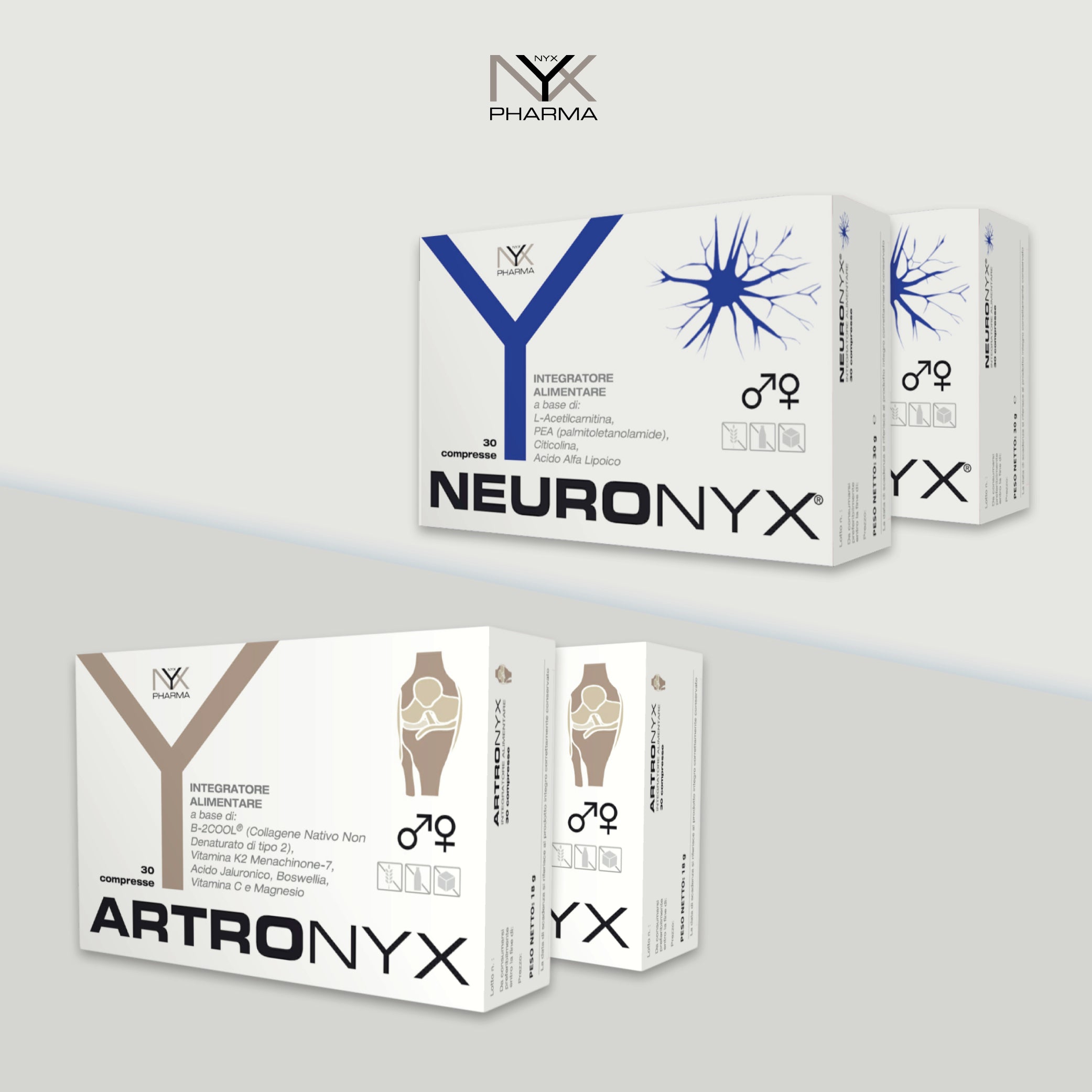ARTRONYX è un integratore alimentare innovativo a base di Collagene Nativo Non Denaturato di tipo 2, Acido Jaluronico, Boswellia, Vitamina C, Vitamina K2 Menachinone-7 e Magnesio.