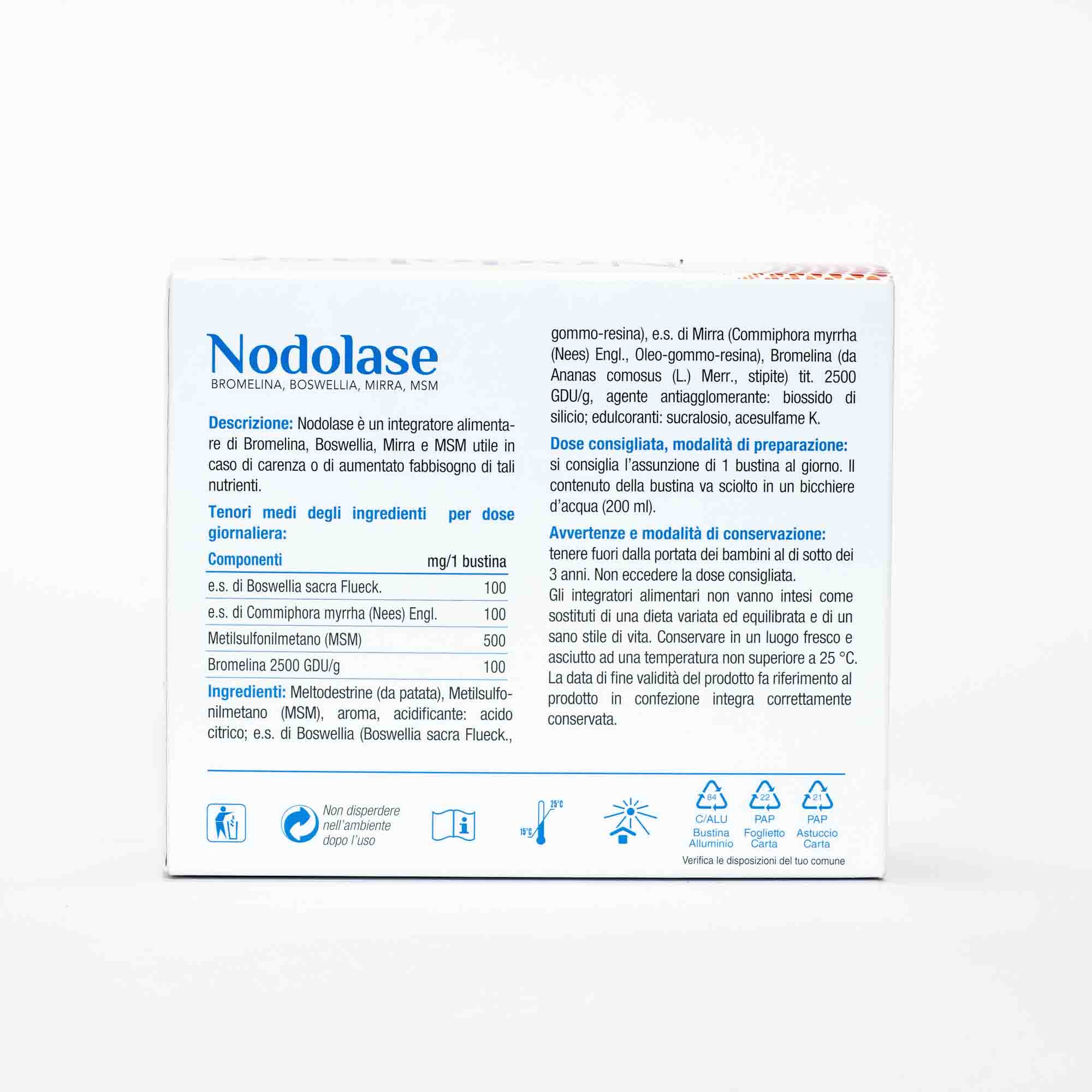 Nodolase is a food supplement based on natural active ingredients, which can help treat edematous phenomena of an inflammatory and post-traumatic nature, such as inflammatory pathologies, sports injuries or post-operative injuries.