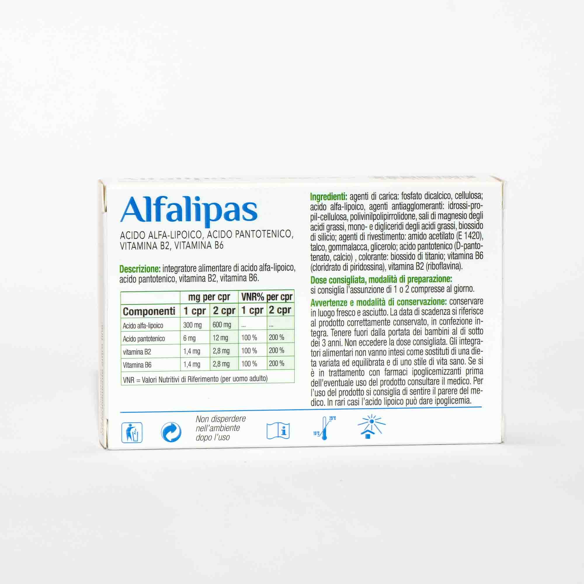 Alpha Lipoic Acid 300 mg | Pantothenic Acid 6 mg | Vitamin B2 1.4 mg | Vitamin B6 1.4 mg